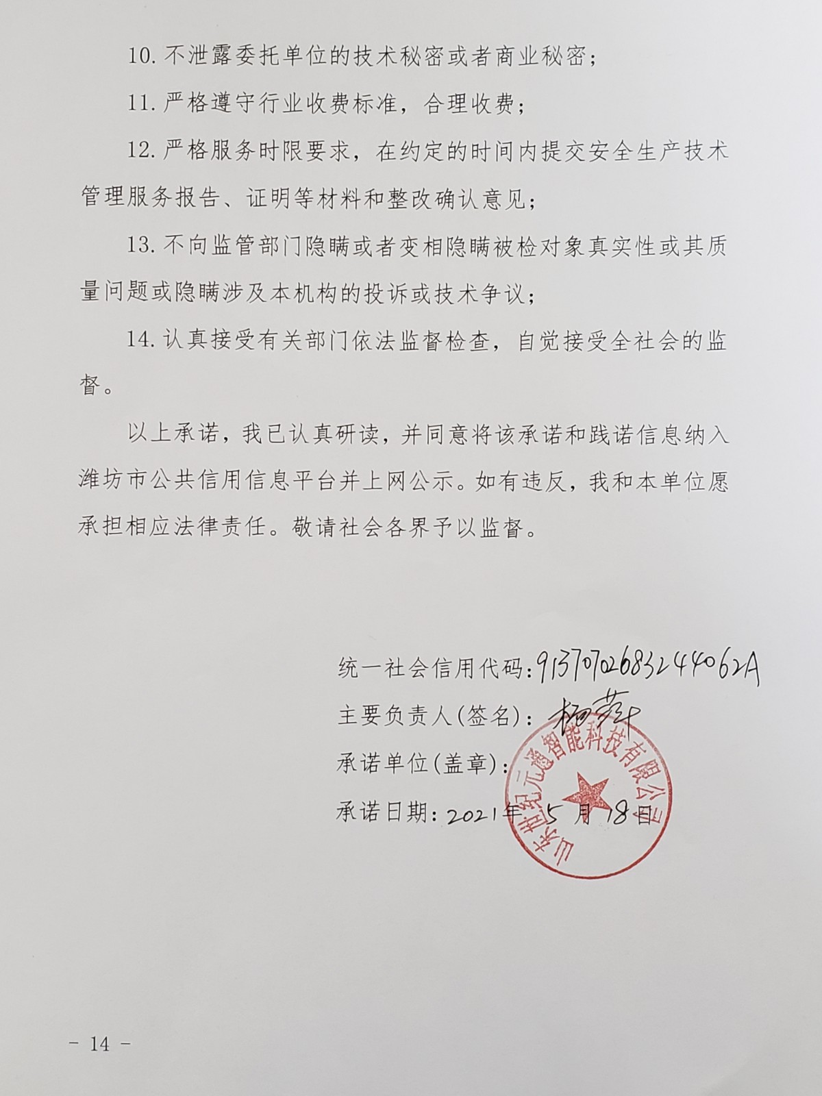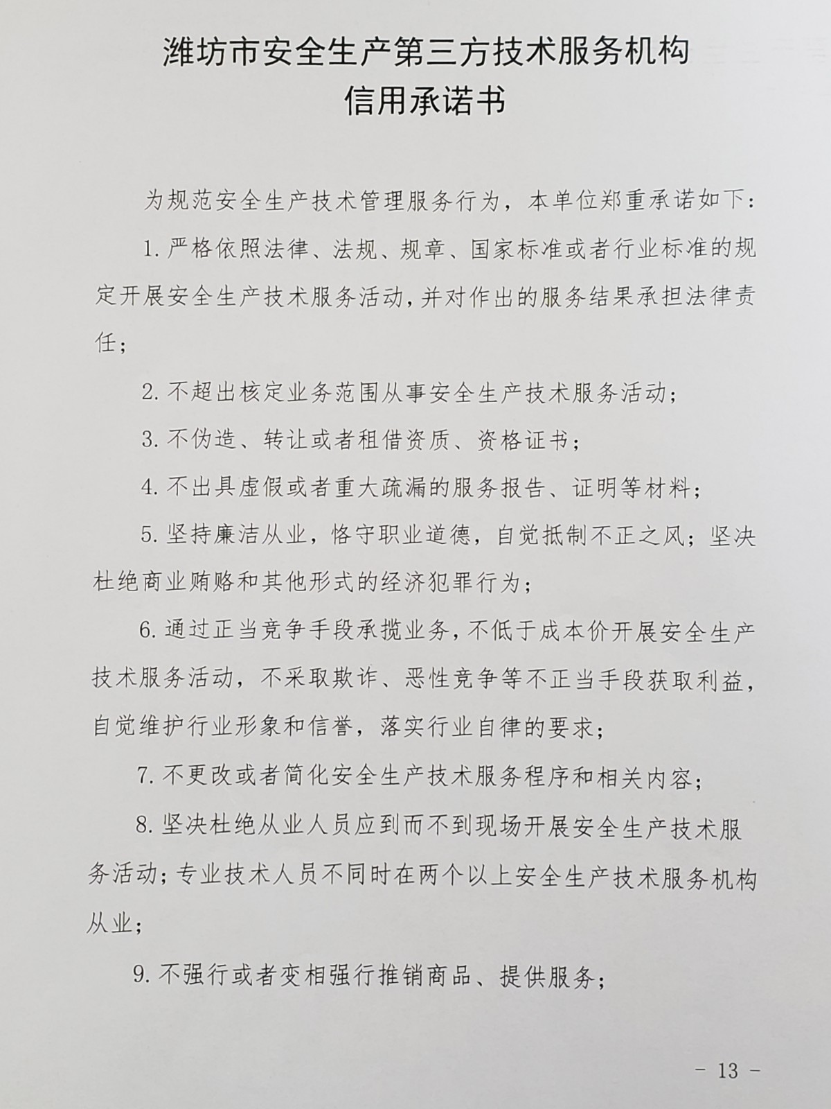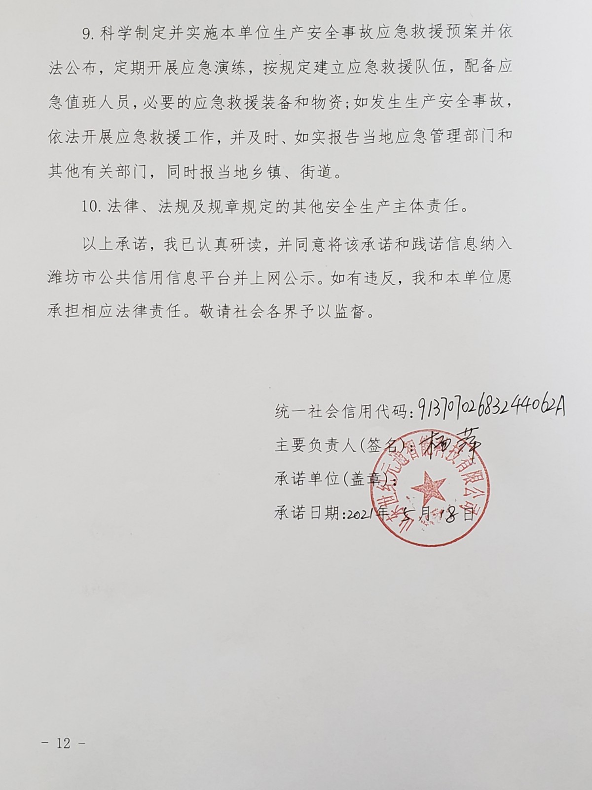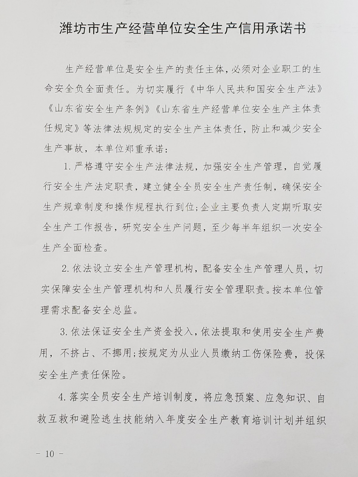 公司關(guān)于《濰坊市生產(chǎn)經(jīng)營(yíng)單位安全生產(chǎn)信用承諾制度》的公示