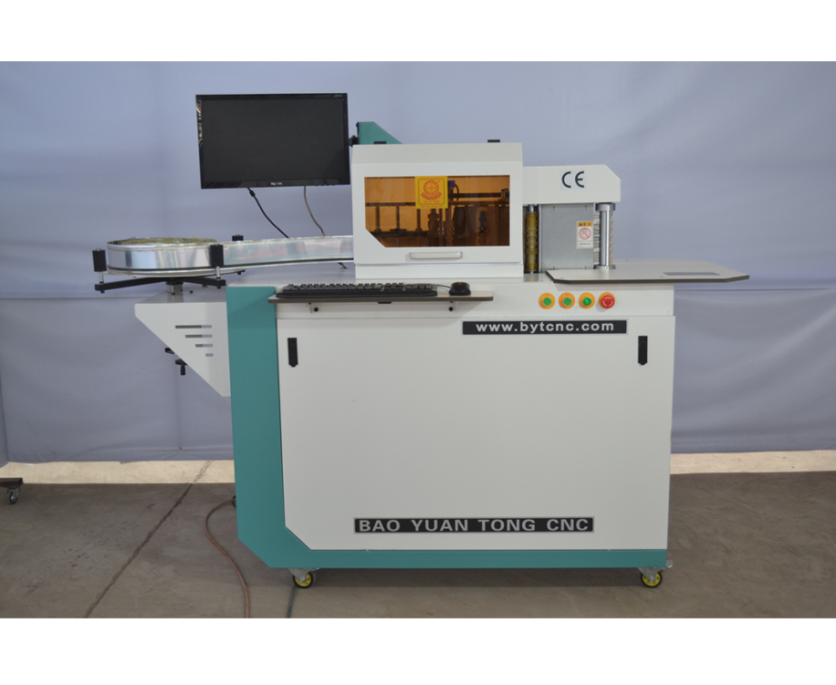 彎?。?/span>.采用雙排銅軸設(shè)計(jì),純平式彎弧器,小弧度拍、大弧度擠壓成型,做字速度快,而且不傷料,每天可做80-100平方字。