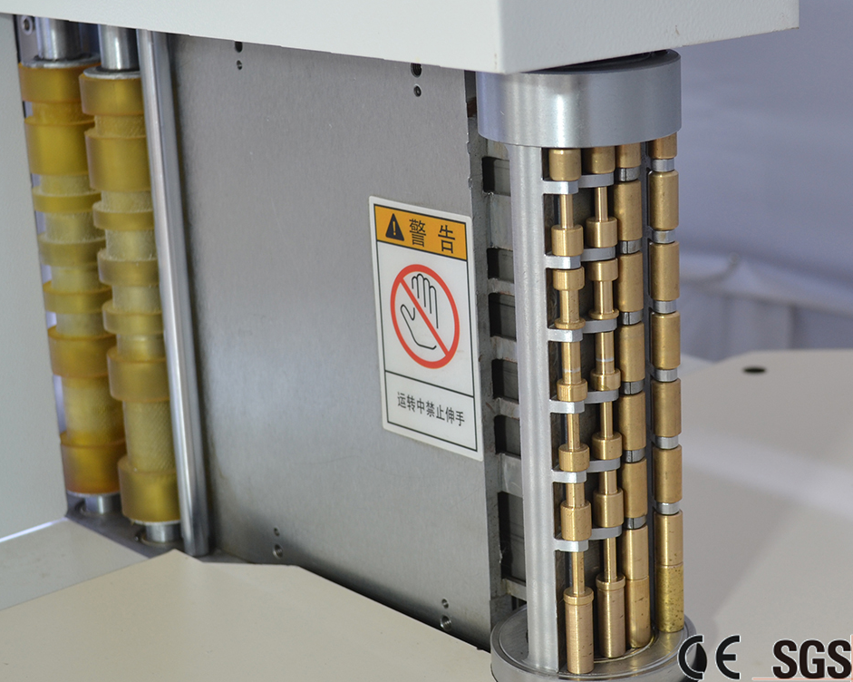 送料:送料滾軸為加粗直徑36mm的膠輥,而且加了編碼器,保證了送料精度和速度