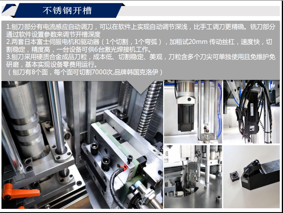 2.兩套日本富士伺服電機和驅(qū)動器(1個切割,1個彎?。?,加粗試20mm 傳動絲杠,速度快,切割穩(wěn)定,精度高,一臺設備可供6臺激光焊接機工作。
